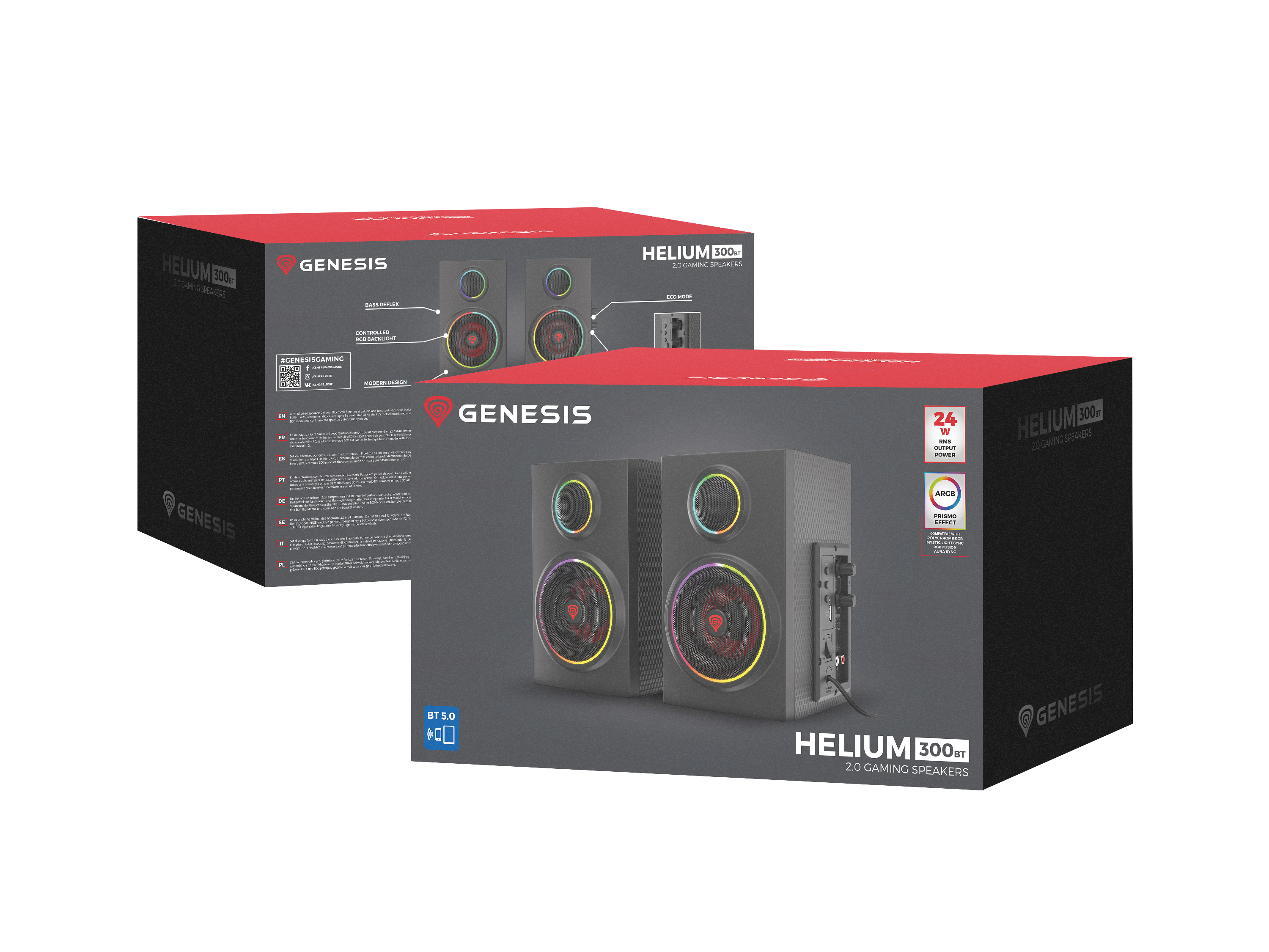 Helium 300 BT sind die ersten Lautsprecher auf dem Markt, die es ermöglichen, die Hintergrundbeleuchtung über ein PC-Motherboard zu steuern, wodurch sie mit dem Rest des Computers synchronisiert werden können. Schaffe eine einzigartige Atmosphäre und genieße die